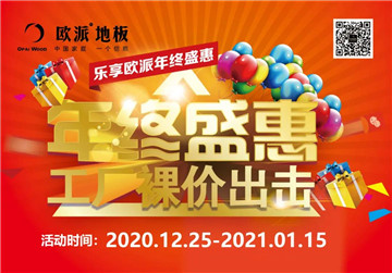 2020年即将结束,我们将迎来全新的2021年!欧派地板为回馈新老客户,特推出“欧派年终盛惠工厂裸价出击”活动。