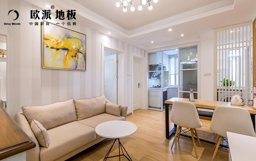 4.品种花色较多,欧派强化地板有印象高迪,古匠,书香门第等多个系列不同色系可以供装修搭配选择。并且从采购到包装,历经72道工序,每到程序都逐片检查,品质恒定。