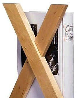 3。写字台的书夹。 字台上的书籍、文件通常都需要用书夹来固定。质量好的地板往往质地过硬,并且花纹美观,用这样的“废料”地板来制作书夹再合适不过。而且一点都不复杂,两只需要块大小一样的地板,然后按照适当的宽度在一块地板上开槽,然后将另外一块地板的局部涂抹粘胶后拼合起来,形成“x”型。将再地板的边缘用锯子修理平整,比较后在地板的底部装订上薄铁片,一个简单的书夹就做好了。
