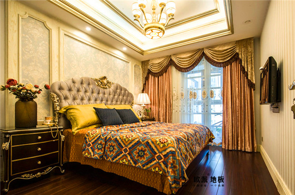 在搭配欧式古典设计的地板中,实木地板比较受一些高端消费者的喜爱,实木地板以其天然纹理和原木色泽彰显尊贵,配合木饰墙面更是能够复刻欧洲宫廷的奢靡风格。而实木多层地板的优势则在于更加多变的表面花色和出色的稳定性,实木多层地板相比实木地板更能适应一些复杂的铺装环境,比如一些安装了地暖的住宅,选用实木多层地板或许更为适合。